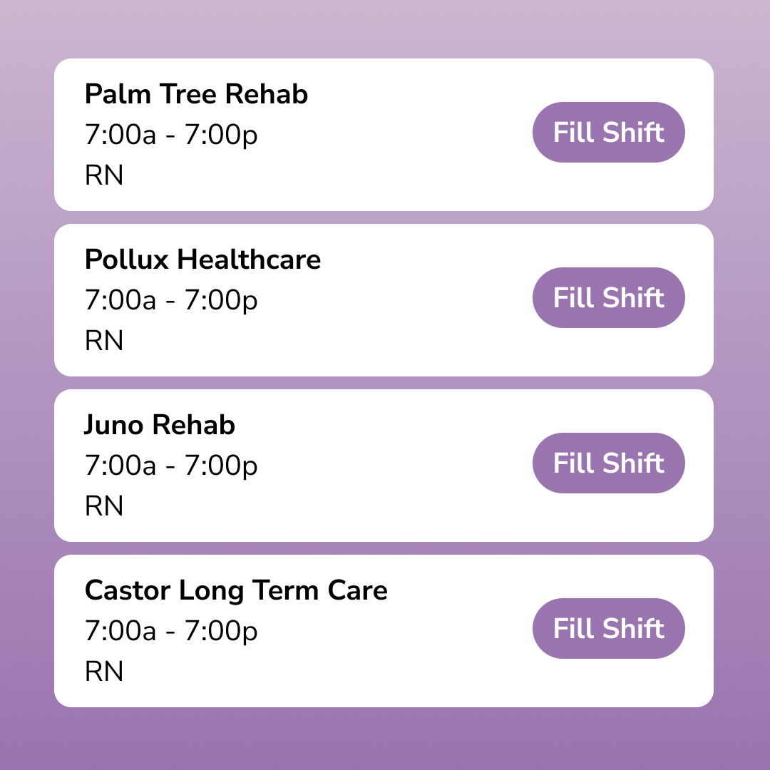 Equip staff with an app to explore and select available shifts, with facilities approving assignments for the right fit.