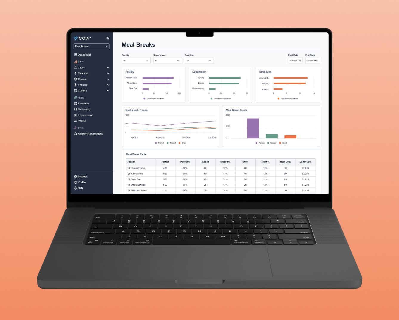 Track KPIs across every facility in your network in a single dashboard.